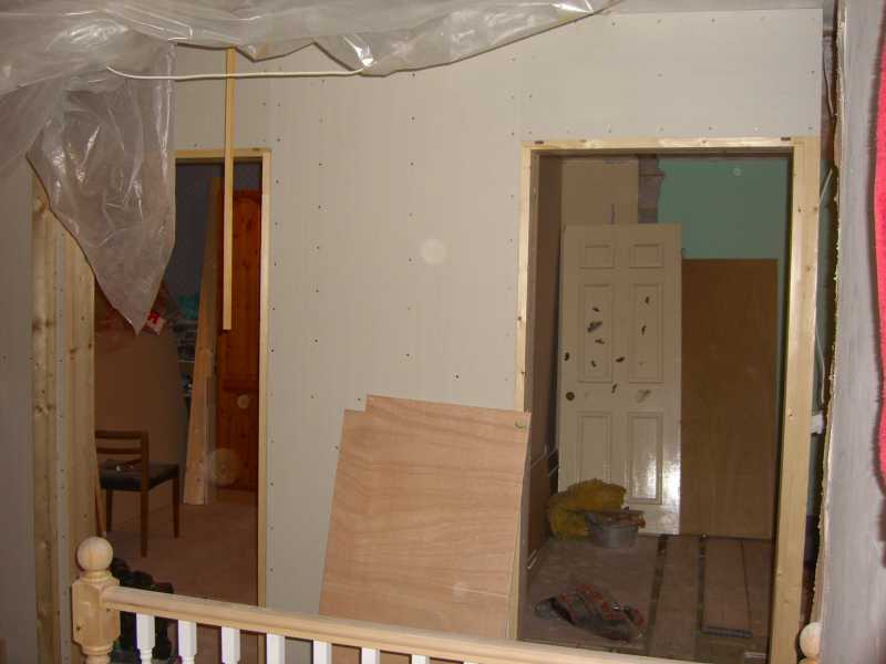 | Meanwhile, I crack on with fixing big flat wobbly bits to the wall (more commonly known as plasterboard).